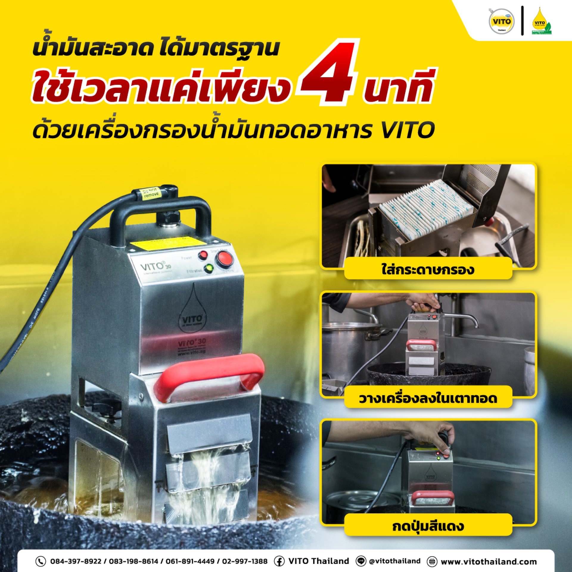 กลิ่นเหม็นไหม้ เศษไหม้ติดเฟรนช์ฟราย น้ำมันดำคล้ำ คุณยังกล้าเสิร์ฟอยู่เหรอ? แต่มีทางออก! แค่ใช้ VITO เครื่องกรองน้ำมันทอดระดับโปร