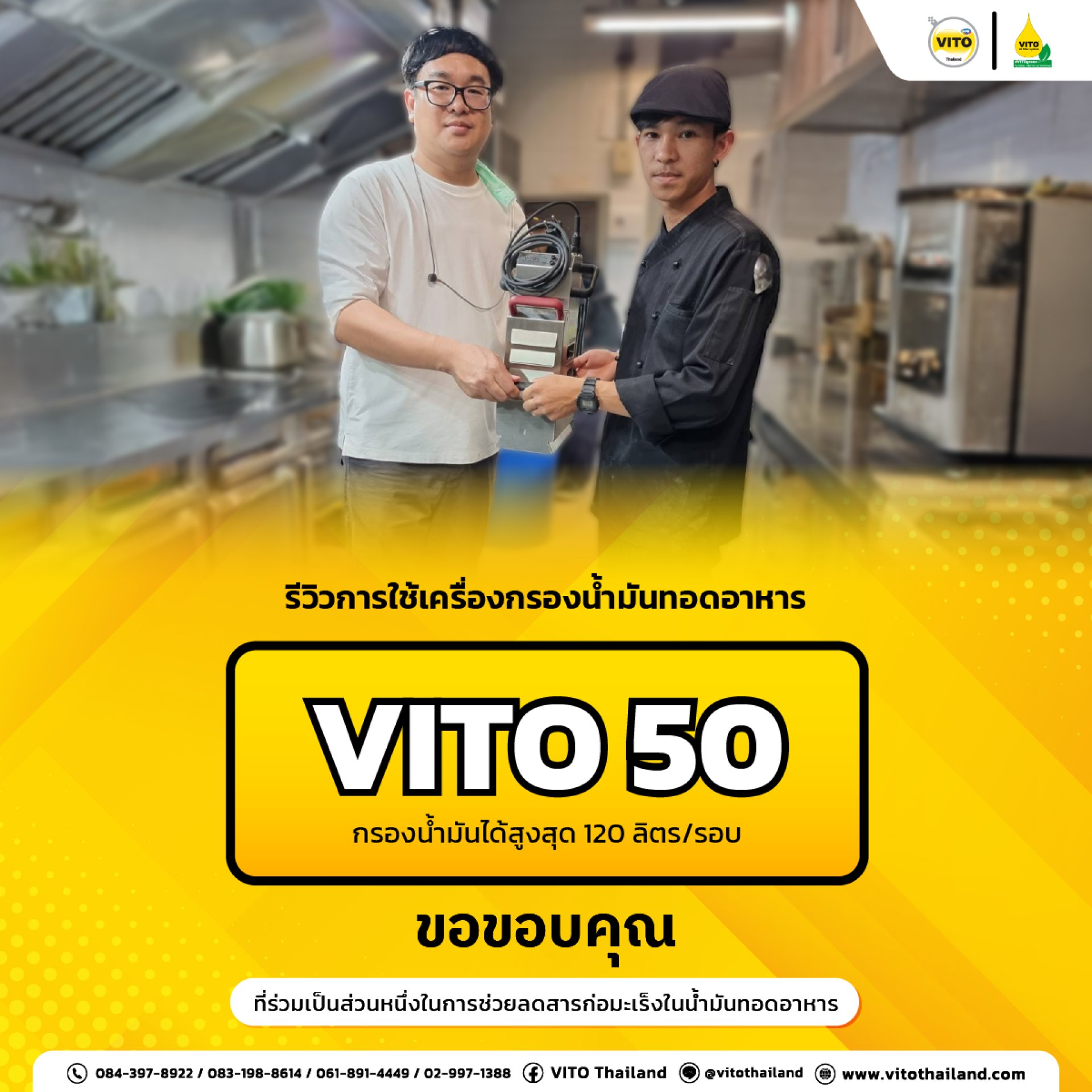 VITO 50 ตัวช่วยกรองน้ำมันที่เชฟมืออาชีพเลือกใช้! กรองน้ำมันได้สูงสุด 25 ลิตร ลดสารก่อมะเร็ง ช่วยควบคุมคุณภาพอาหาร ขอบคุณที่ร่วมเป็นส่วนหนึ่งในการยกระดับคุณภาพในครัว