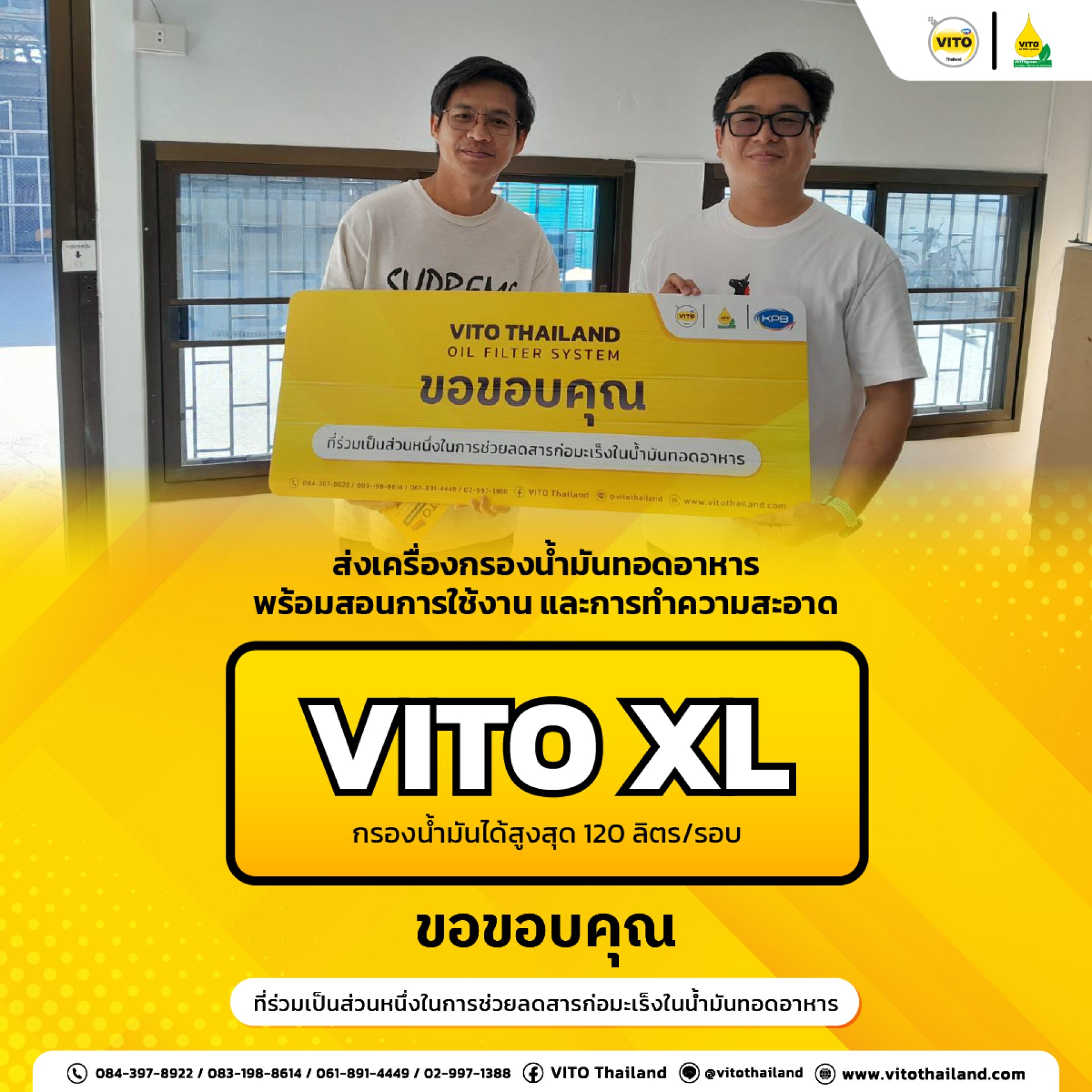 ขอบคุณที่ไว้วางใจเลือกใช้เครื่องกรองน้ำมันทอดอาหาร VITO XL กับบริการส่งถึงมือ พร้อมสอนการใช้งานและการทำความสะอาดเครื่องให้ใช้งานได้ง่าย และสะดวกยิ่งขึ้น ด้วยเทคโนโลยีที่ช่วยลดสารก่อมะเร็งในน้ำมันทอดอาหาร