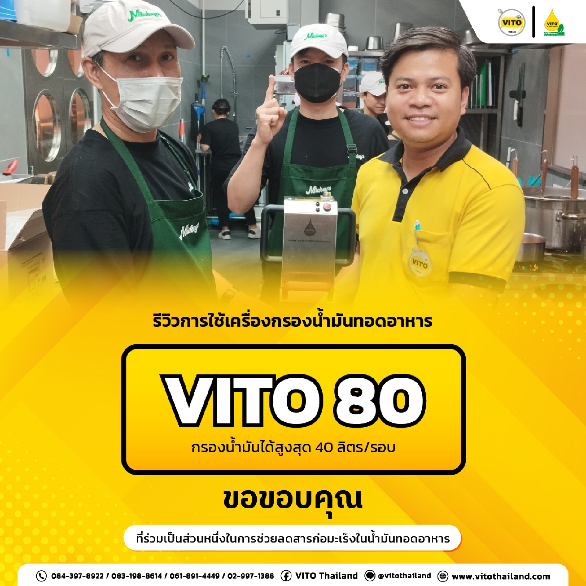 เครื่องกรองน้ำมันทอดอาหารที่ดีที่สุด ขอบคุณที่ไว้วางใจ VITO 80 เครื่องกรองน้ำมันทอดที่ตอบโจทย์ ทำให้ใช้น้ำมันได้นาน ประหยัดต้นทุน ควบคุมคุณภาพอาหารทอด และน้ำมันทอดสะอาด พร้อมยกระดับครัวไปอีกขั้นด้วยเครื่องกรองน้ำมันทอดอาหาร VITO
