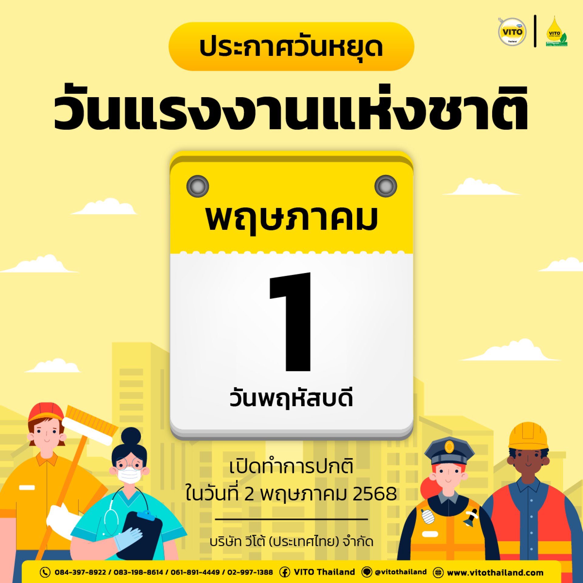 บริษัทฯ จะหยุดทำการ 1 วัน (1 พฤษภาคม 2568)