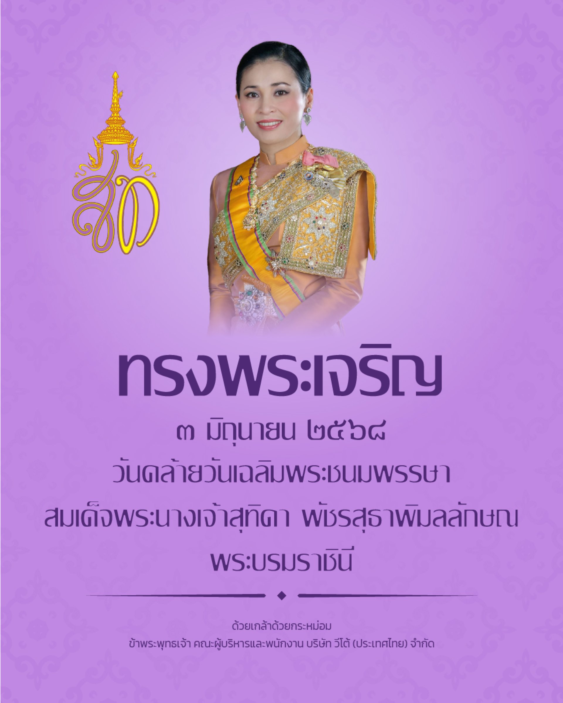 วันที่ 3 มิถุนายน 2568 เนื่องในโอกาสวันเฉลิมพระชนมพรรษา สมเด็จพระนางเจ้าสุทิดา พัชรสุธาพิมลลักษณ พระบรมราชินี