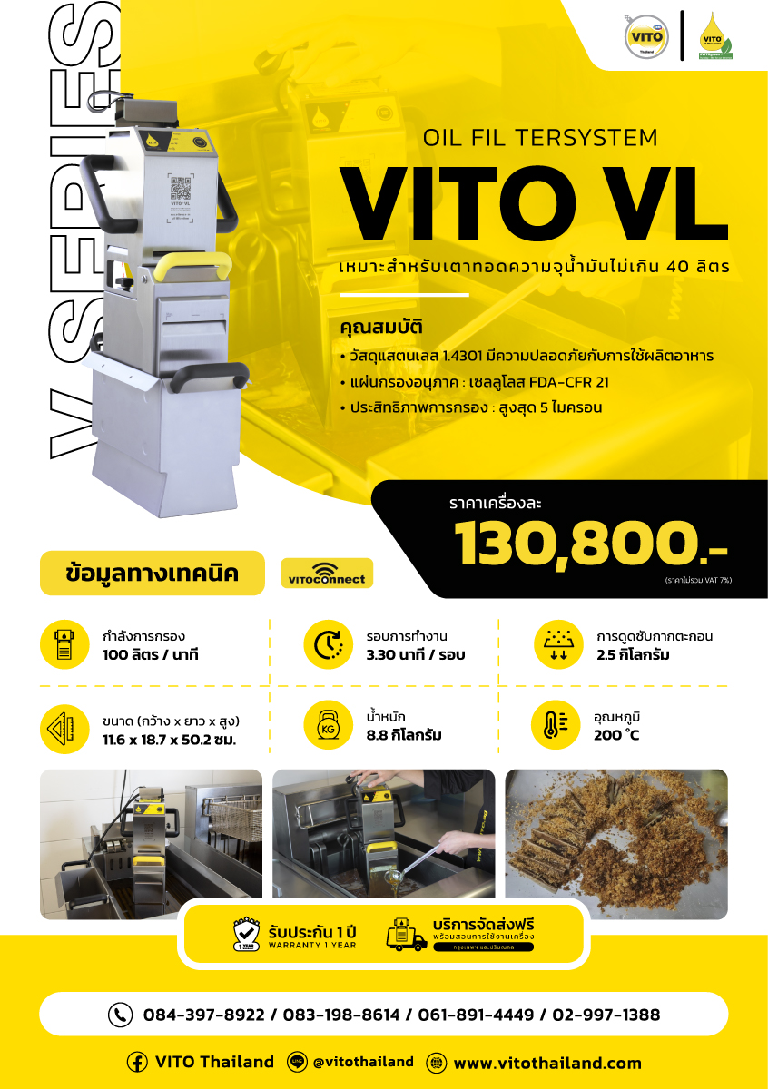 เครื่องกรองน้ำมันทอดอาหาร (Oil filter system) VITO VS – ยืดอายุการใช้น้ำมัน ลดต้นทุน เพิ่มความสะอาดปลอดภัย เหมาะสำหรับร้านอาหาร และโรงแรม ใช้น้ำมันไม่เกิน 20 - 100 ลิตร